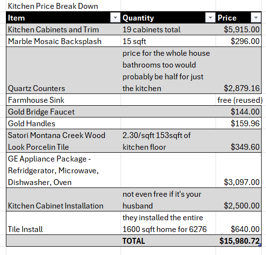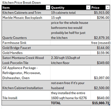 Warm Luxurious Kitchen with Full Remodel Price Break-down