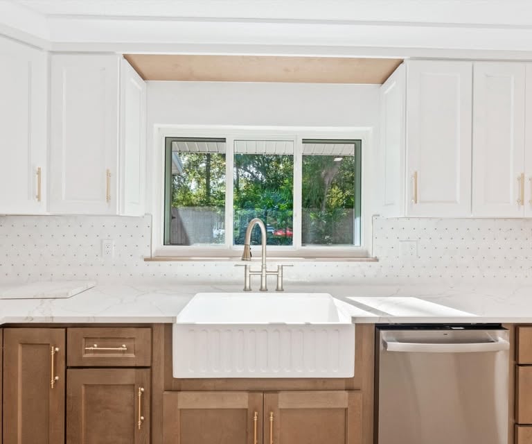 We remodeled this kitchen after a loss after a loss. That's right two losses. Flood, Fire. I didn't expect or want either. My goal after that was to sell the house. I had it in mind to do the best I could and that meant maximizing the sale value of the home with a beautiful but cost-effective kitchen and I think we managed to accomplish that and there's a few pretty quick things I did to really make it the whole look succinct and sparkly.